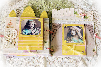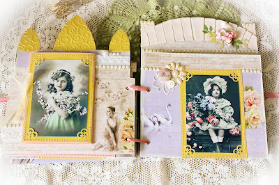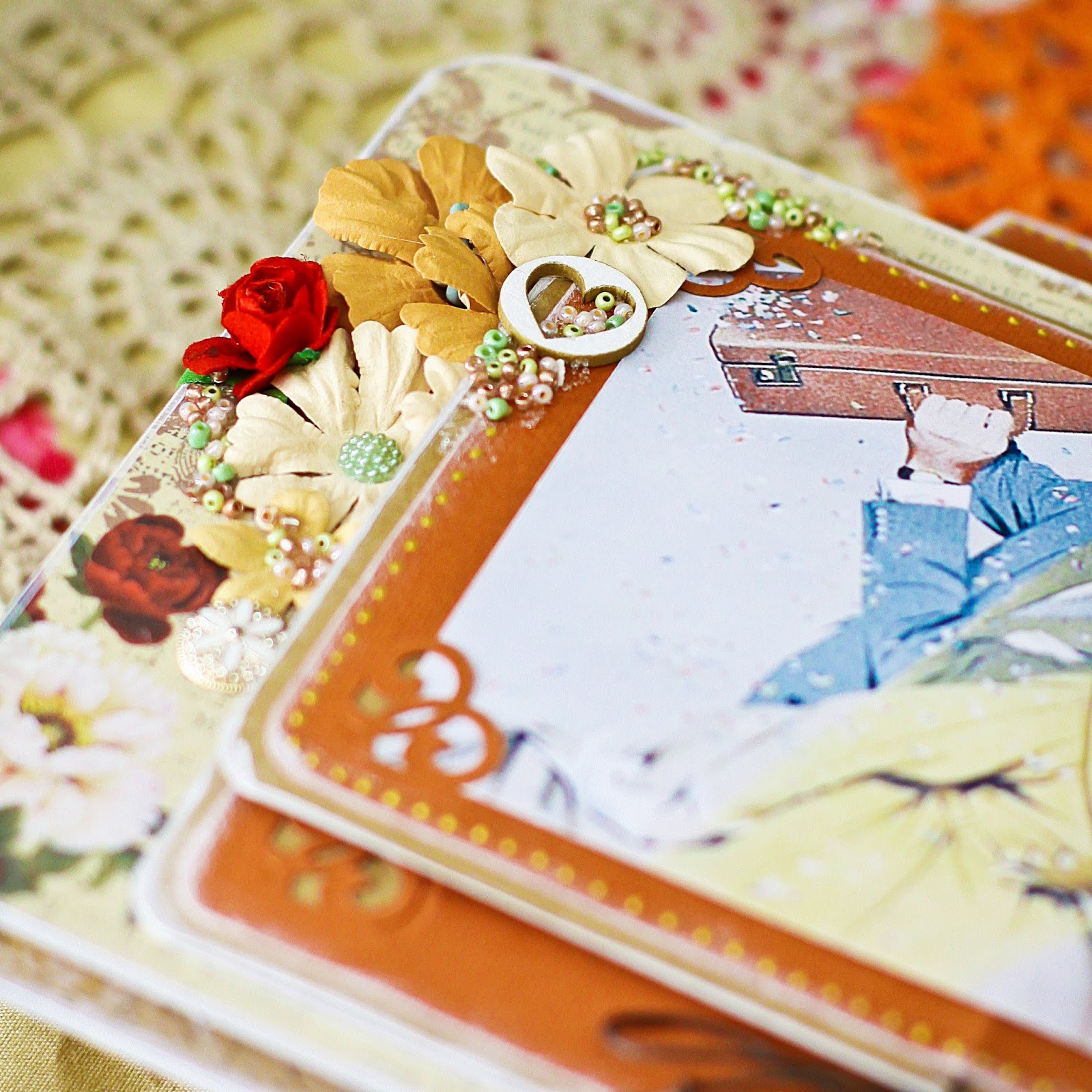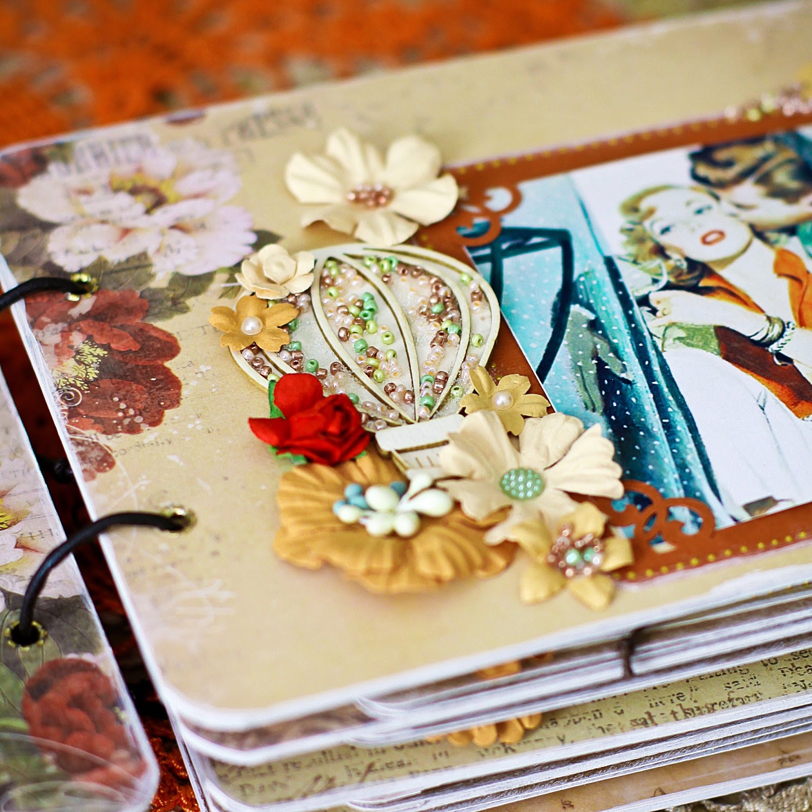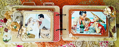 Когда вы заглянете вовнутрь альбома, то увидите, что у меня везде вставлены романтичные  ретро картинки. Они очень украшают альбом и создают ту самую атмосферу... А самое главное - они легко вытаскиваются, и потом можно вставить абсолютно любые фото.