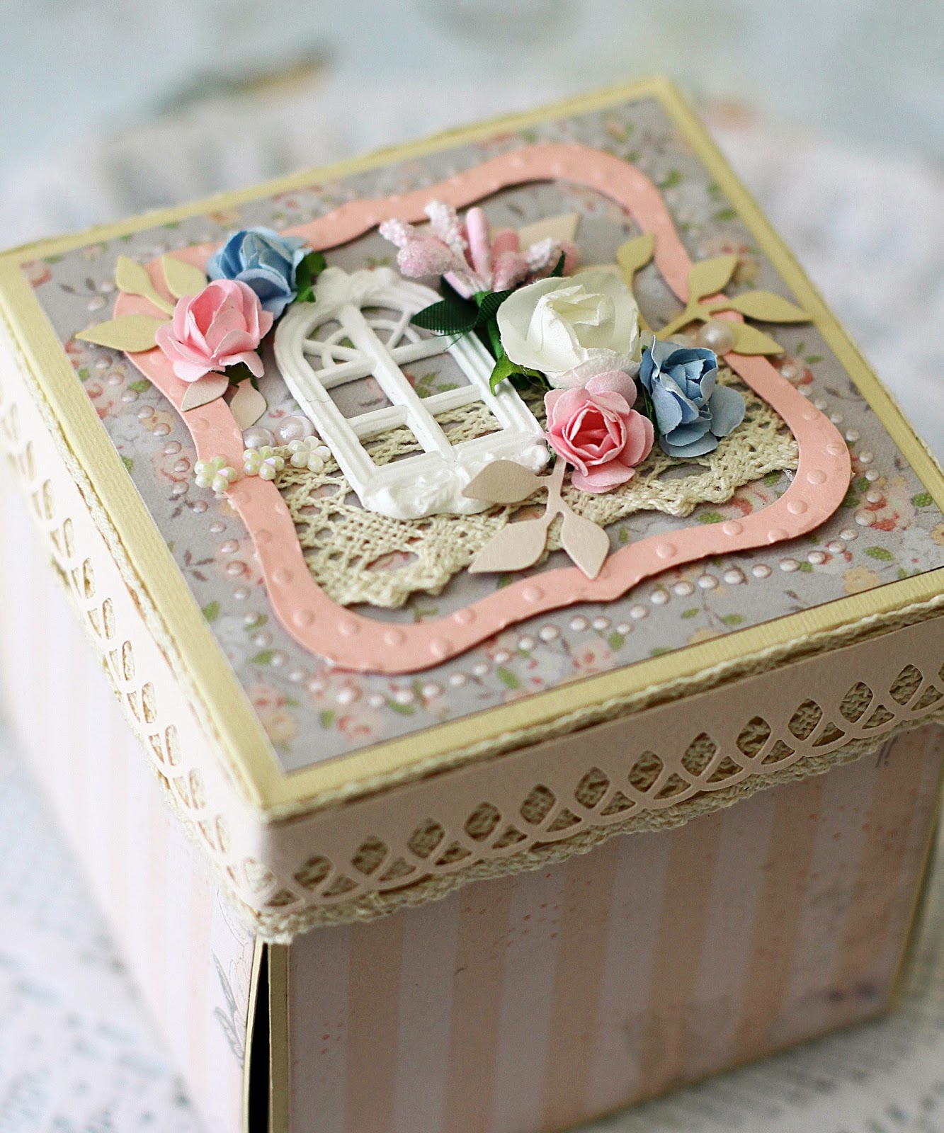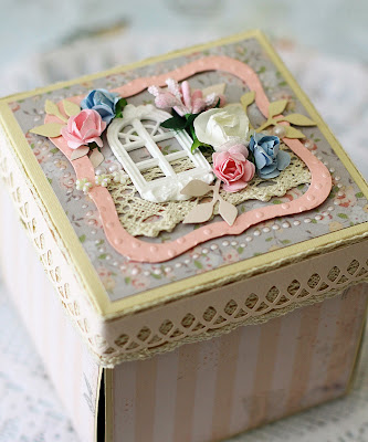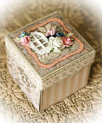 Сегодня я c очень кружевной и нежной работой... :-) Это Magic Box.  С виду незатейливая квадратная коробочка, которая меняет свою форму при снятии крышки!