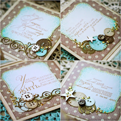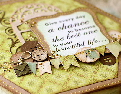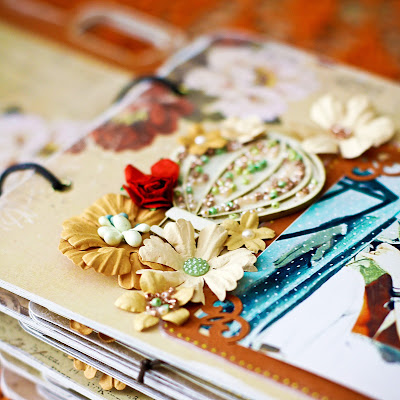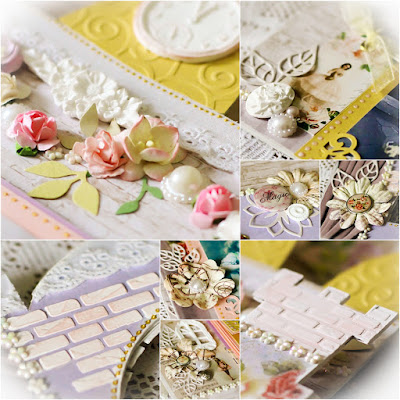 Ну, и немного элементов поближе... Кстати можно сказать - впервые работаю с чипбородом. Обратите внимание, что альбом очень нежный, но в нем нет ни единого цветка - только чипборд. Это тоже немного необычно для меня... Обычно так и хочется добавить каких-то цветочков... ;-)