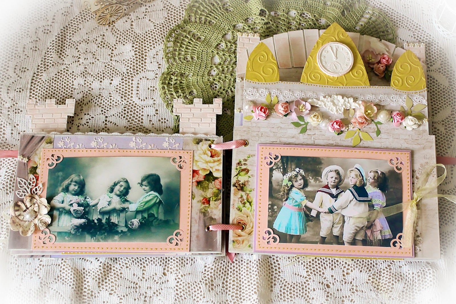 Я осуществила, наконец, свою давнюю мечту - сделать фотоальбом в форме самого настоящего замка, с настоящими кирпичными стенами, увитыми зеленью и цветами, с настоящими золотыми башенками, со всякими рюшечками и воздушными бантиками... От него так и веет чем-то сказочным, легким и беззаботным... :-)
