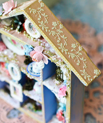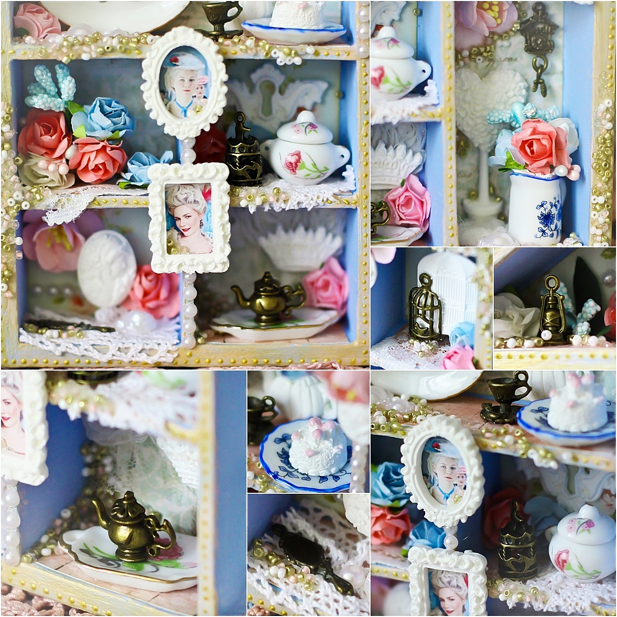 Ну, как же я могла обойти стороной свои любимые шэдоу боксы? Конечно, не могла!!! :-) В итоге получился вот такой волшебный бокс в форме домика по мотивам фильма "Мария-Антуанетта". Если вы смотрели этот фильм, то наверняка были под впечатлением от богатых декораций, от совершенно разных образов королевы, ее нарядов, туфель, причесок... А еще красивая современная музыка в сочетании образами 18 века... Очень много контрастов - от цветовой гаммы и музыки до сочетания богатства и роскоши вместе с деревенскими мотивами.
