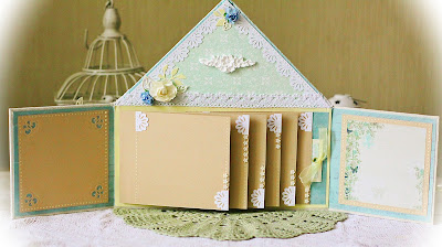 В альбоме 5 разворотов. Чтобы оживить альбом, я вставила в него пока картинки с маленькими принцессами... :-) Почти на каждой странице есть всякие раскрывающиеся конструкции, которые позволяют увеличить количество фотографий в альбоме.