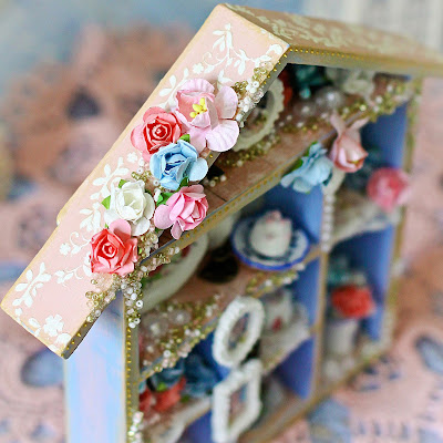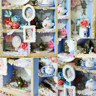 Также королева всегда любила цветы, и в ее деревне она выращивала разные редкие сорта. Именно поэтому мой шэдоу бокс прямо-таки усыпан разными цветочными композициями!!!