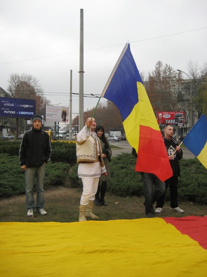 Da, astăzi a fost sărbătoare, da, astăzi a fost cea mai frumoasă ziuă din viaţă la majoritatea tinerilor basarabeni. Astăzi, bătându-ne cu pumnul în piept am aclamat Unirea şi am arătat tuturor că suntem Români. Nu ştiu, nu cred că dispun de acel vocabular necesar pentru a vă reda ce s-a petrecut astăzi la Chişinău. În jurul la 500 de oameni au mărşălui prin centrul capitalei cântând Deşteaptă-te Române şi Noi suntem Români, şi nimeni nu a îndrăznit să ne reproşeze ceva, suntem mulţi, puternici şi principalul - români. Vedeţi şi voi singur pozele şi video şi încercaţi să vă imaginaţi atmosfera sărbătorii Unirii.