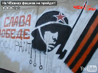 "După ce au desenat svastici pe copaci, vandalii au ajuns şi la zidurile unor clădiri din sectorul Ciocana. Peretele unui bloc a fost presurat cu inscripţii şi simboluri jignitoare în adresa veteranilor." Vedeţi video aici: www.nit.md. Uite aşa a reacţionat postul TV procomunist NIT la incidentul petrecut la Ciocana, pe o clădire cu vreo 16 etaje. Încă un pic şi în loc de vandali mai n-au pronunţat - români. Totul a început astfel. În noaptea dinspre 8 spre 9 mai, comsomoliştii de la Ciocana în frunte cu Pavel Grigorciuc şi Mihail Polianski, au desenat pe un perete de pe o clădire, chipul unui soldat sovietic şi o aşa numită panglică a lui Sf. Gheorghe, cu inscripţia: "слава победе". Din câte ştiu, e un act de huliganism care ar trebui pedepsit conform legii. În fine, mai erau comuniştii la putere, deci fu admisibil să fie trecută cu vederea acţiunea lor. După care, acţiunea s-a repetat încă de vreo 2 ori, până când într-o noapte bravii băieţi au vopsit acel perete cu vopsea albă, aşa cum a fost până la desen. Apoi comuniştii din nou şi-au desenat pseudoeroul, de data asta deschis, cu video cu tot şi încă tipul care la sfârşitul filmului vorbeşte, ameninţă direct pe tinerii cu viziuni pro româneşti cu răfuiala fizică, după care ieri tot dânsul le dă celor de la NIT interview în rol de jertfă, acuzând totodată "vandalii" că au vopsit clădirea în negru, ştiind în sinea lui că adevăraţii vandali sunt ei însăşi. În pozele şi video pe care vi le voi prezenta mai jos, observaţi bine mutra lui Grigorciuc şi a tipului care a dat interview-ul la NIT. Ceea ce fac dumnealor în poze şi filmuleţ reprezintă un act de huliganism, trecut cu vedere de organele legii. La fel, cu vreo lună în urmă am fotografiat în subteranul de lângă Academia de Ştiinţe câteva inscripţii xenofobe antiromâneşti, făcute de către Grigorciuc şi băieţii săi, dovezi? Păi simplu, priviţi în poză ce au scris pe spate comuniştii de la Ciocana şi ce era scris în subteran: "Анархия - мать порядка"