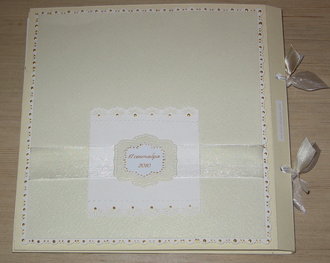 Сделала очередной свадебный комплект - книга пожеланий и конверт для денег. Размер книги, как обычно, 20х20 см. На каждой страничке отштампованы розочки золотыми чернилами.