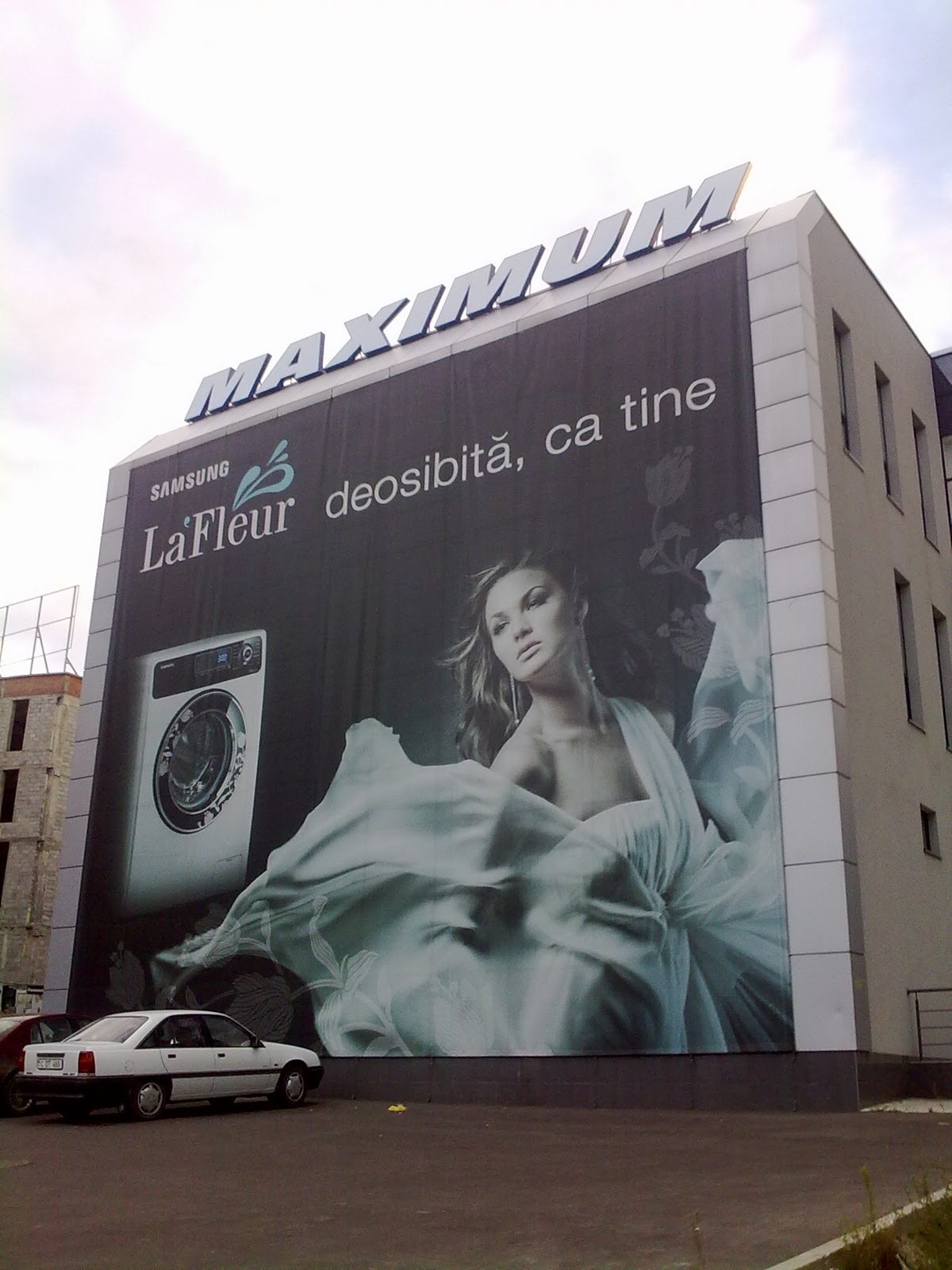 îmi place să mă uit la mediu ce mă înconjoară când merg pe stradă şi iată ce perlă am observat (deşi este foarte greu să nu observi aşa banner, deşi din prima dată majoritatea nici nu-şi dau seama care e fişka):