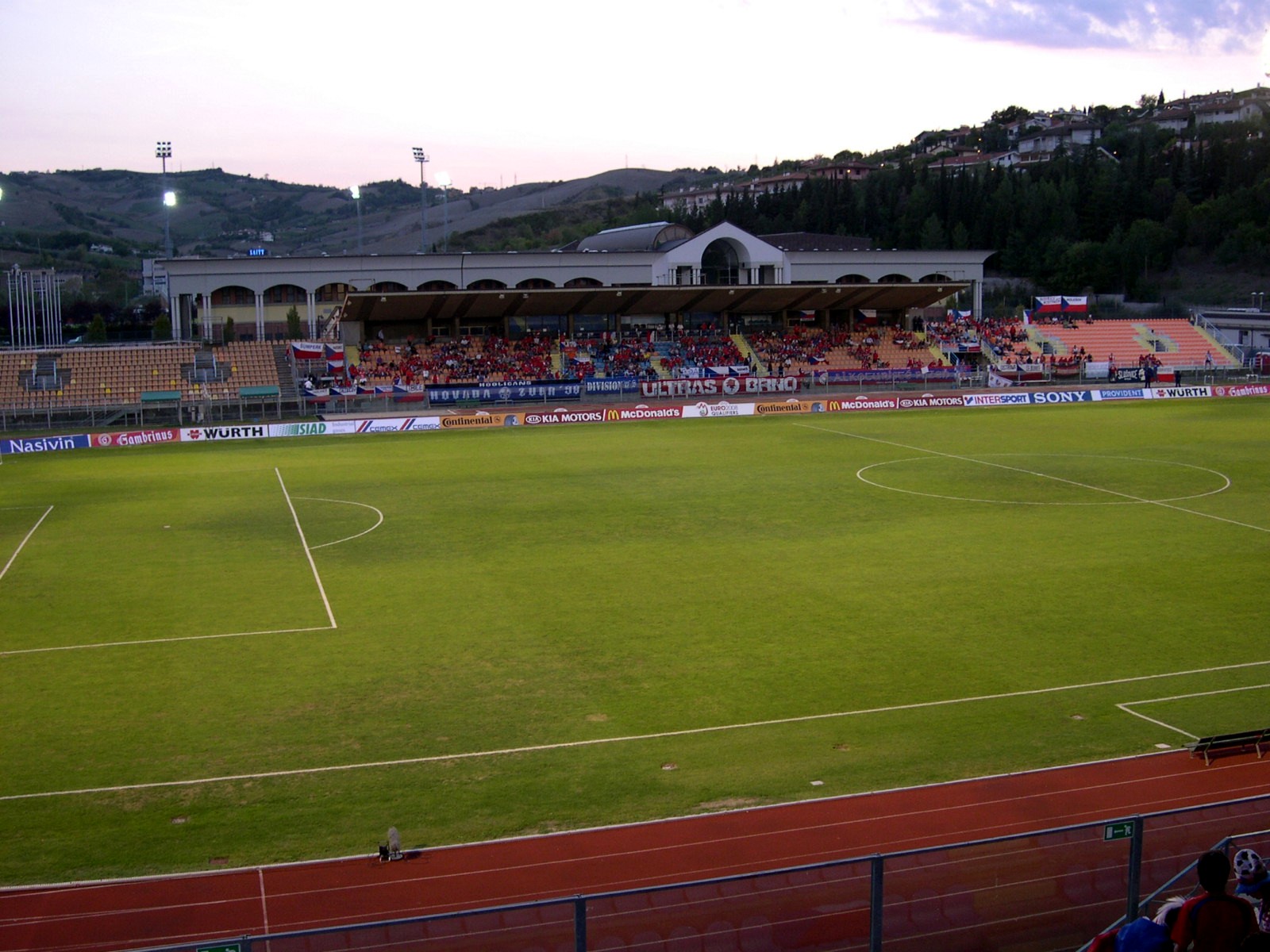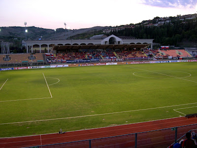 San Marino - MoldovaMarți, ora 21.30 (Moldova 1 TV)Naționala Moldovei joacă mâine în San Marino. De unde o fi apărut și ăștia? Dacă facem o incursiune în istorie vedem că San Marino s-a format ca stat cu mult înainte ca Bogdan să constituie Țara Moldovei. De fapt, e vorba de o așezare de doar 60 de km2, cam cât o jumătate de Chișinău, cu doar 30 de mii de locuitori (cam cât orășelul Fălești). Dar ce așezare! Cu istorii, mituri, legende. Doar au făcut și ei parte din Imperiul Roman. Și cred că mai fac, pentru că depind totalmente de Italia, aflându-se pe teritotiul acesteia, undeva în apropiere de țărmul Adriatic. Simbolul Republicii San Marino este castelul de pe muntele Titano (foto). Povestea lui este la fel de cutremurătoare. Cetatea a fost făcută de un ”Sfânt”, cum a fost numit de populația locală, Marinus, care a fost un cioplitor de piatră dalmațian. Marinus a străbătut marea Adriatică împreună cu colegii săi de credintă, și de muncă, pe vremea împăratului Dioclețian pentru a scăpa de persecuție. Aici, el a construit cu propria sa mână de la fundație până la țiglele din piatră, o capelă de piatră. O clădire rezistentă de piatră este veșnică ca și credința lui. Ca simbol al credinței și al muncii el a mai cioplit din stânca exterioară a muntelui un pat de piatră. Legenda spune că el a murit la 3 sept 301, lăsând poporului moștenirea: muntele, munca și sâmburele convingerii, numit mai târziu libertate. „Nemini teneri” care înseamnă: a nu depinde de nimeni. „Nemini teneri”: libertate, în limbaj medieval. Așa erau țăranii din San Marino acum 2 mii de ani.Gata cu istoria că ne plictisim. Capitala statului se numește tot San Marino și are o populație de 4500 de locuitori. Aproximativ cât are satul meu :). Au un singur stadion omologat de UEFA, Stadionul Olimpic din Serravalle (foto), cu o capacitate de 7 mii de locuri, unde se va juca meciul San marino - Moldova. Au mai multe echipe de fotbal, toate de amatori. În mod normal nu au cum să ne pună probleme, mai ales că nu au în lot niciun jucător profesionist!
