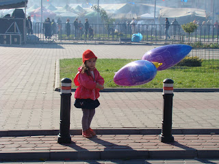 Mai sus...se pot vedea câţiva dintre bloggerii focşăneni dragi mie aşteptând "recompletarea" echipei...care se descompletase...printre vânzătorii ambulanţi, clovni, câteva ture de carusel... :D.