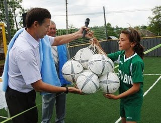 La inaugurare directorul gimnaziului, a spus că de acum încolo pe teren vor juca sute de copii, unde sunt acei copii dom’ Director, dacă Dvs. nu permiteţi ca nimeni să joace pe teren? Şi ultima întrebare, dar cea mai importantă, cînd vor putea toţi doritorii să joace fotbal, nestingheriţi de nimeni, pe acest teren?