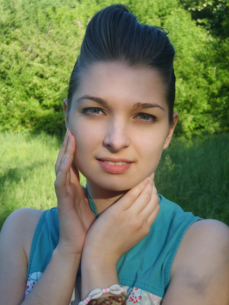 Я обожаю жаркую погоду ,но к сожалению меня поджимают экзамены, для того что бы чаше писать.… Это изумительное платье я приобрела давненько в Киеве, но всё же оно остаётся одним из моих фаворитов. Мне в нём нравится всё начиная с принта и цветовой гаммы и заканчивая кроем. В данном образе я его скомбинировала с белой сумочкой и балетками, а так же с очками с голубыми линзами, фенечкой и браслетиком из ракушек. Фенечку мне привезли из Африки, а браслет я приобрела в Крыму.