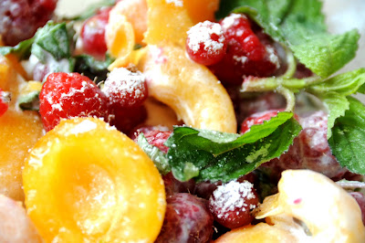 Лето мое любимое время года. Не могу сказать, что хотела бы, чтобы всегда было лето, так как даже лето к августу уже надоедает. Но три месяца я его люблю)))!!! Я думаю, что у многих с детства зародилась привычка "любить" лето, потому, что все его ассоциировали с каникулами, когда можно играть, смотреть телевизор и не делать домашнее задание. Настоящая свобода для любого ребенка. Сейчас лето, не совсем такое свободное, как в детстве, потому, что дети и муж расслабиться не дадут))). Но как-то все равно проще, например, утром, когда иду гулять с собакой не надо одевать на себя кучу вещей и собаку не надо одевать, не надо одевать ребенка, когда веду его в детский сад, не надо прогревать машину, не надо застегивать сапоги, не надо ждать пол часа, чтобы выйти из дома после того как высушила голову после мытья... И вообще, как то меньше времени тратится на борьбу с холодом и можно заняться каким-нибудь интересным делом. Есть еще один пунктик, из-за которого лето просто невозможно не любить. Это изобилие фруктов, ягод и овощей, причем они так быстро сменяют друг друга, что даже не успеваю насытиться ими. Все выходные мы с мужем объедались фруктами и ягодами. Муж ел мороженное с малиной и сливками, я делала себе и дочке разные фруктовые салатики, в которые шло все, что было.