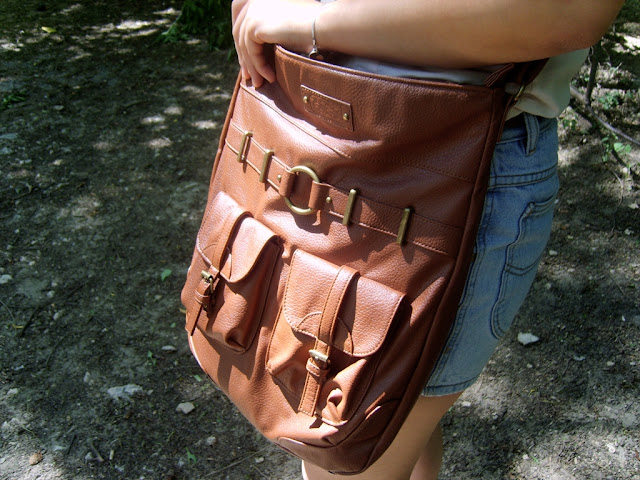 H&M jacket , Vintage shirt and collar, Levi’s shorts , Colors of world bag, No-name sneakers and belt