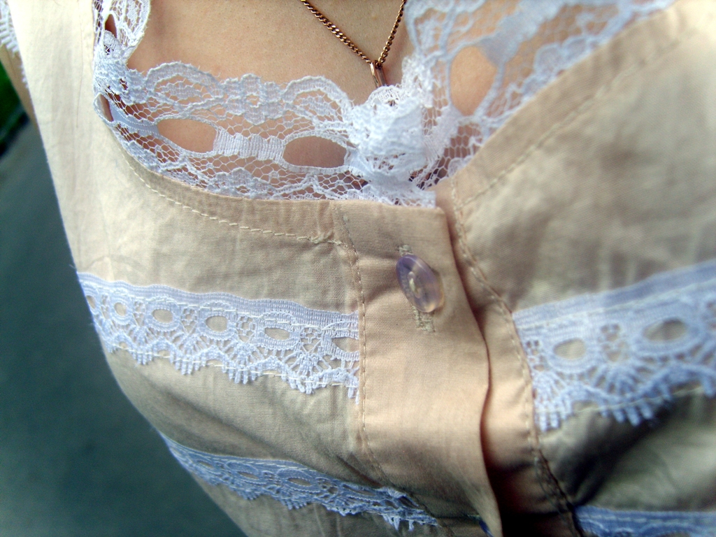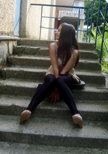 Этот образ представляет собой смесь двух стилей: Винтаж и Урбан. Блузка телесного цвета, с кружевными вставками легко сочетается с чёрными леггинсами , тем самым создавая контраст не отвлекающий от лёгкости и воздушности, не напрягая глаз зрителя и не перегружая композицию лука. Сумка с леопардовым окрасом является акцентом, но в то же время не выбивается из цветовой гаммы основного образа ,объединяя композицию в единое целое.