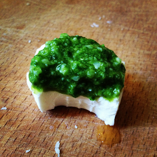 С прошлого года я очень полюбила песто и могу кушать его просто так - ложками, причем делаю его из того, что попадается под руку в тот момент, когда есть базилик дома))))))