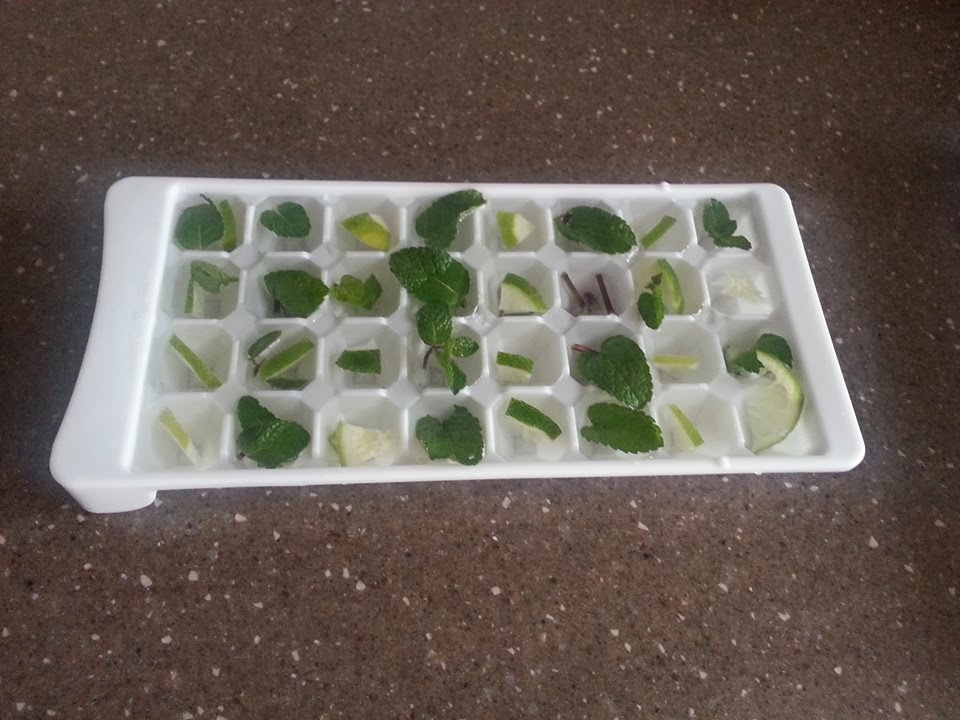 Apă fiartă şi răcită, mentă, lime.