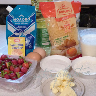 Capsune cu crema fiarta de vanilie si cu cranț de fidea