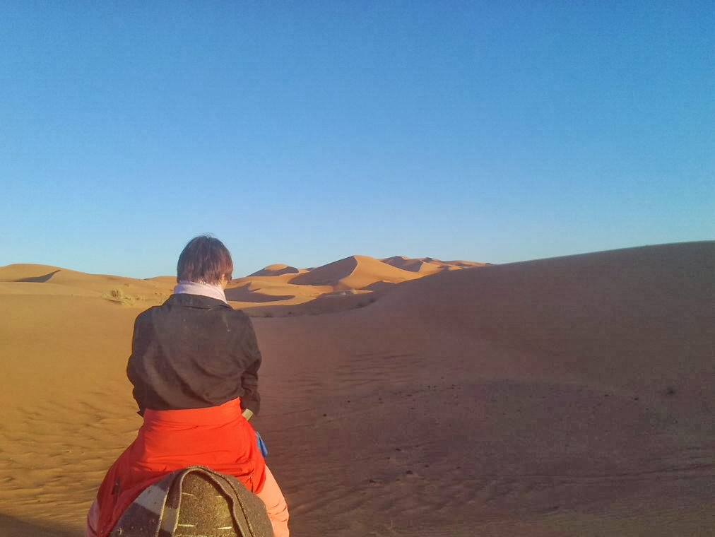 Cum sa nu vizitam si niste dune de nisip in Maroc. Avem o cina comuna cu grupa, si pentru doritori o mica plimbare cu dromedarii.