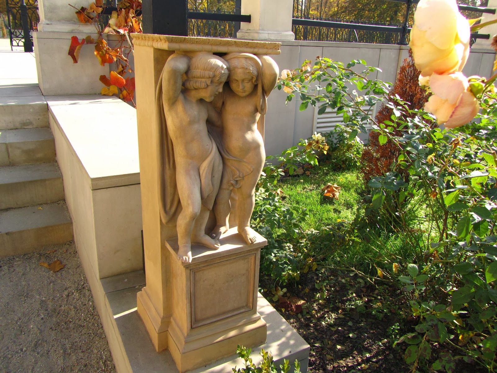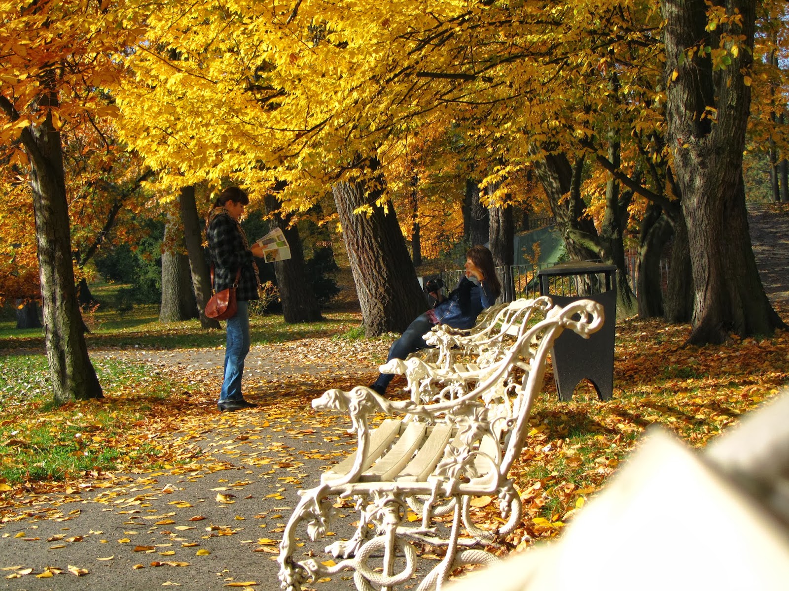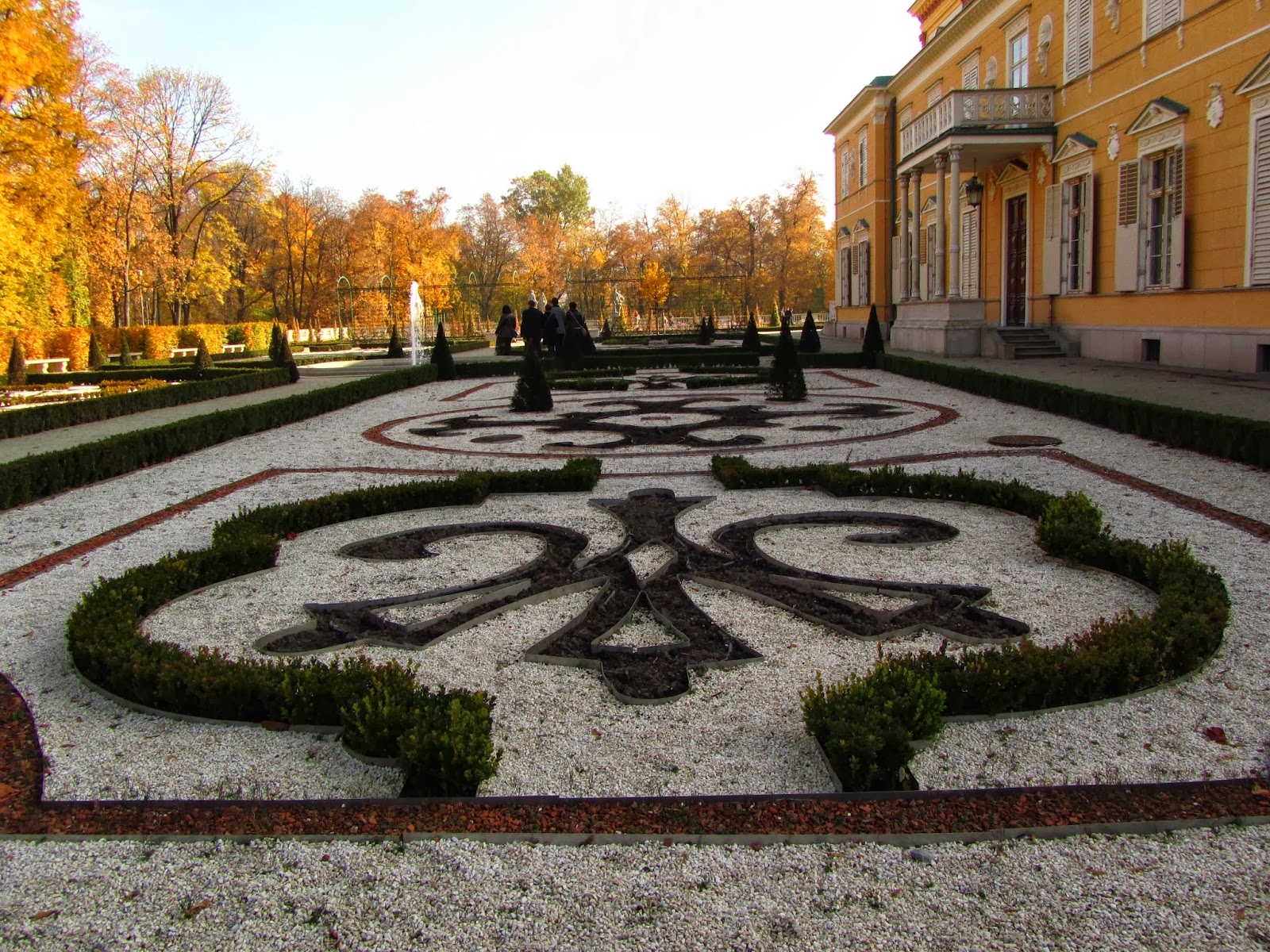 Земля успанная золотыми листьями и зеленые ограждения высотой примерно в 5 метров возле длинного озера переносят посетителя в тот век, когда король отдыхал в своем поместье. Также там есть еще одно, болеемаленькое озеро. Возле него установлены необыкновенно красивые скамейки с резными узорами.