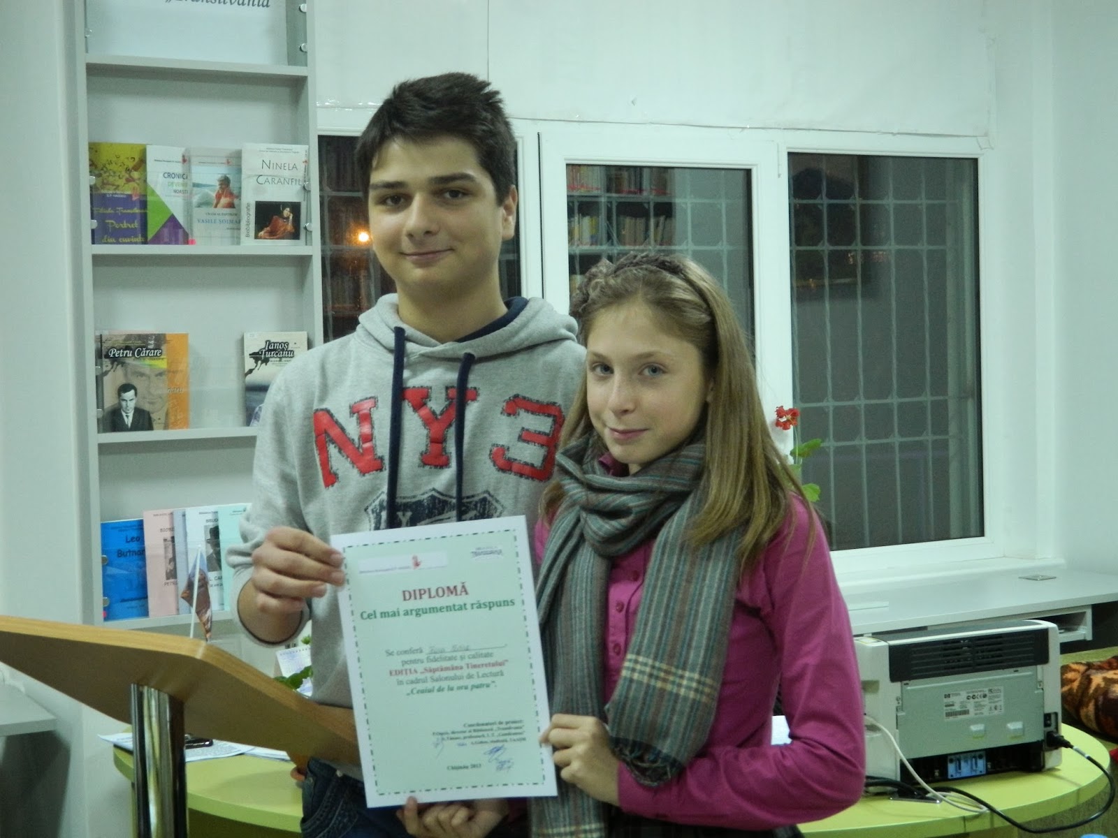 Ana GABOR, bibliotecar, Filiala „Transilvania” Săptămâna Tineretului continuă la Biblioteca „Transilvania”. Astăzi membrii cei mai „mici” ai Salonului de Lectură „Ceaiul de la ora patru”, au venit să dezbată tema: „Problemele adolescenților și soluționarea lor”. „Actorii” acestei activități au fost elevii Liceului Teoretic „Gaudeamus”, clasele a VII-a lm și a VII-a r2, îndrumați de profesoarele Alexandra Tănase și Elena Orhei, iar din juriu au făcut parte elevii clasei a IX-a și a X-a. Vârsta de 12-14 ani este numită adolescență sau preadolescență. În această perioadă copiii trec dintr-o stare în alta: de la inocență, la greşelile specifice adolescenței. Uneori i se zice „vârstă fragedă”, adică iresponsabilă, dar copilul, adolescentul, tânărul poate și el să răspundă de ceea ce se întâmplă cu el. Dezbaterea de azi și-a propus câteva probleme, ce apar în fața adolescenților, soluționarea lor și responsabilii de aceasta. Ceea ce s-a propus astăzi este o generalizare a problemelor văzute, simțite, trăite de către elevi. Aceste probleme au fost clasificate în câteva module: Lipsa comunicării; Dependența de internet; Suicidul; Absența îndelungată a părinților; Violența. Lipsa comunicării s-a conturat ca o problemă frecventă în prezent. Lumea este din ce în ce mai ocupată și nu mai are timp pentru sine, pentru cei apropiați. Părinţii muncesc mult pentru a asigura un nivel bun de trai și uită de comunicarea cu cei dragi. Elevii s-au arătat alarmați de această problemă și și-au propus soluții reale pentru a o rezolva. Ei au afirmat că vor fi cei care vor iniția comunicarea în familie, în clasă, în cercul de prieteni. La început a fost Cuvântul... dar secolul nostru e lipsit de cuvânt, în locul lui, venind telefonul, calculatorul. Despre aceasta s-a discutat în cadrul următorului modul Dependența de internet. Astăzi, aproape fiecare familie are calculator conectat la Internet. Astfel, se creează o dependență de internet, dacă părinții nu fixează niște limite. Copii au recunoscut că petrec uneori prea mult timp în fața calculatorului și s-au arătat îngrijorați de aceasta, dezbătând acest subiect. Unii au menţionat că internetul este un bun izvor de informații, ușor de găsit, care necesită doar tastarea unor butoane. Fără calculator este greu în secolul al XXI-lea. Cu toate acestea ei conştientizează că uneori e nevoie de un regim de utilizare sau parolă stabilită de către părinți. Una din cele mai grave probleme este suicidul.Interesați de acest subiect, elevii au adus numeroase cazuri de sinucidere, privind astfel, asupra cauzelor acestui fenomen. Ei afirmă că copiii, adolescenții sunt slabi de caracter, în unele situații, neavând un sprijin, procedează extremal. S-a ajuns la concluzia că, în ciuda tuturor problemelor, trebuie să prețuim viața. Ea ne este dată de la Dumnezeu, de aceea trebuie s-o iubim și să trăim fiecare clipă cu adevărat. Absența îndelungată a părinților s-a arătat a fi cauza a mai multe probleme, stări confuze ale adolescenților. Ei cred că această absență e cauzată de rutina cotidiană a părinților, care uită să-și întrebe copiii uneori „Cum a fost azi la școală?”, „Ce note ai luat?”, „Cum te simți”. Pe lângă aceasta, s-a discutat, nemijlocit, problema plecării părinților peste hotare, ceea ce duce la o absență de lungă durată. Mulți părinți pleacă, unii vin și se duc, alții se întorc, iar alții nu vin deloc. Mulți copii suferă din cauza lipsei unuia sau ambilor părinți, având toate cele necesare: haine, hrană, cărți, caiete, ei sunt lipsiți de afecțiune. Copiii au conchis că această problemă trebuie rezolvată de către stat, prin oferirea mai multor locuri de muncă părinților, ca aceștia să nu fie nevoiți să plece din țară. Un subiect destul de important a fost Violența. Elevii au vorbit despre două tipuri de violență: verbală și fizică. Ei s-au arătat împotriva a tot ce se numește violență, spunând că, în orice situație există o soluție relevantă. Fiecare copil greșește. Maturii, poate, ar trebui să privească cu umor unele gafe ale copiilor sau să le lase neobservate. Dacă este pedepsit de nenumăroate ori, acesta poate să creadă că nu mai este bun de nimic. Fiecare din aceste subiecte a fost discutat, dezbătut de toți participanții. Fiecare s-a afirmat prin propria viziune și chiar au adus exemple elocvente din presă, televiziune, cotidian. Ca să nu fie prea monotonă activitatea, în pauze elevii au recitat poezii scrise chiar de ei cu tema familiei, mamei, copilăriei, adolescenței. În finalul activității elevii s-au arătat mulțumiți de faptul că fiecare și-a expus punctul de vedere cu argumente și exemple și că s-au propus unele soluții pe cât se poate de realizabile.