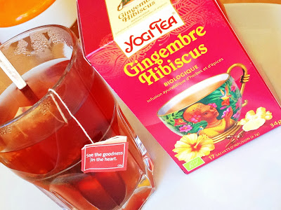 YOGI TEA - Ginger Hibiscus - I love this delightful ayurvedic herb & spice infusion. Made from crimson red hibiscus flowers, it exalts the senses, and is united in love with radiant ginger, offering a cup of warmth and kindness. Take a sip and feel the joy of this blend as it awakens your life force. Ginger Hibiscus is like a warm up exercise. It is joyful, cheerful and helps our being to expand. It is also great as a cold drink.