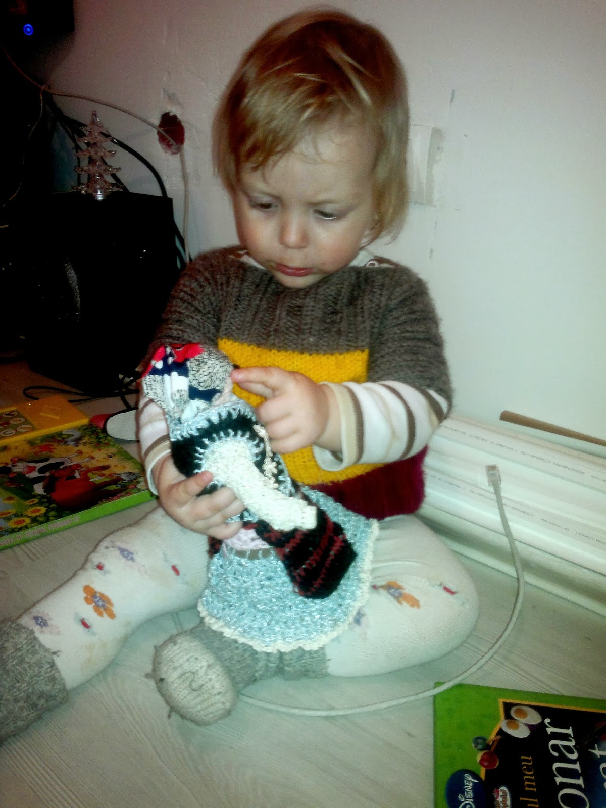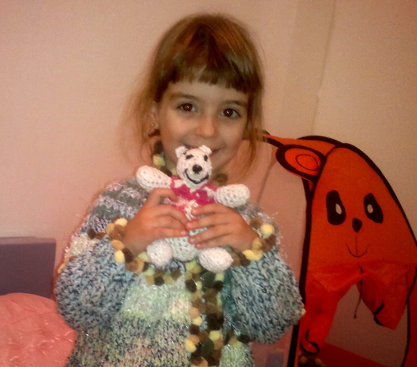 Jucării, tricotate de bunica: păpușa Ileana și ursulețul Vinni.