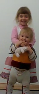 2. Păpușa: sursa de inspirație - fantezia mea. Am încercat să „meșteresc” o româncă din Maramureșul ucrainean, din satul Biserica Albă, așa, cum era străbunica nepoțelelor mele pe linie de tată. Ca să li se întipărească fetițelor în minte portul cu zadie roș - negru peste fustă și șerincă cu flori pe cap. Să își cunoască originea. Pentru vîrsta lor de acum e suficient și atît, iar când vor mai crește nițel, vom confecționa împreună mai minuțios, mai frumos și mai aproape de realitate.
