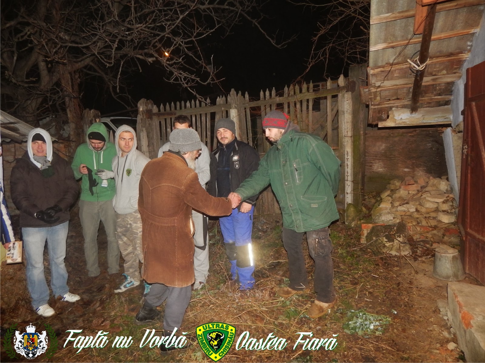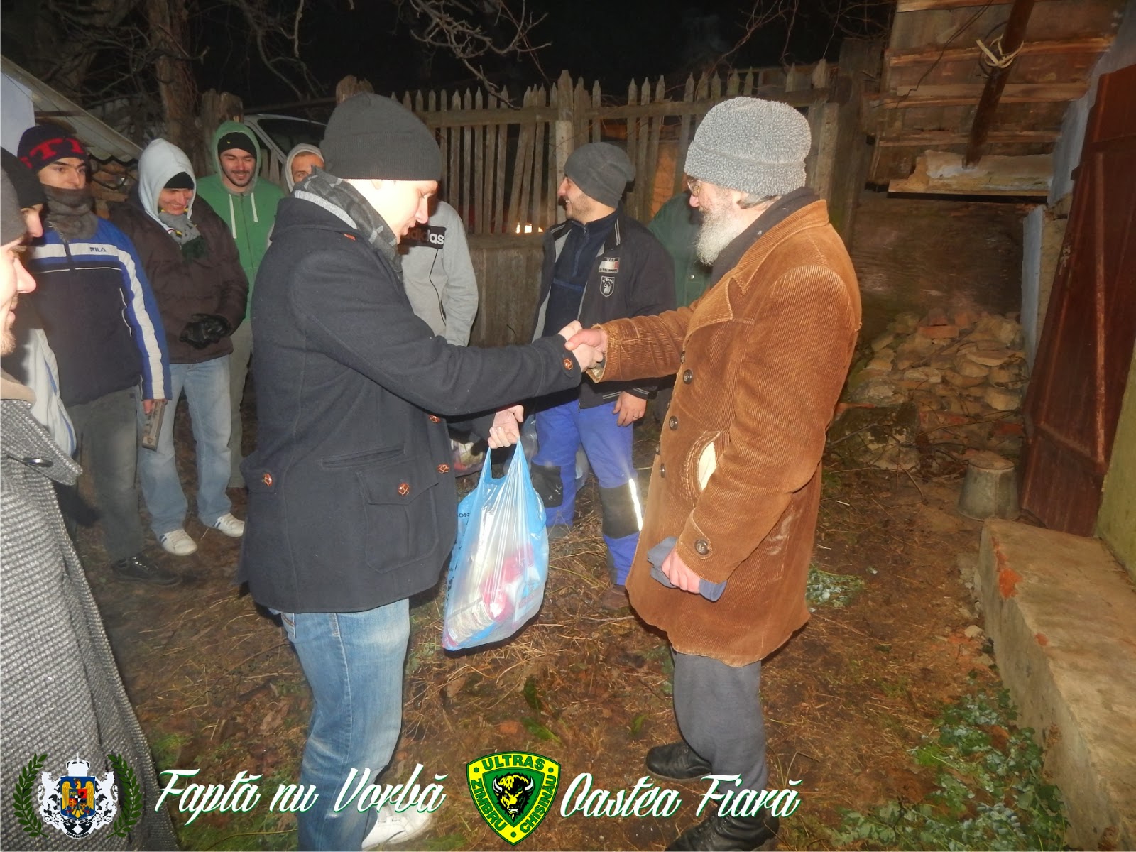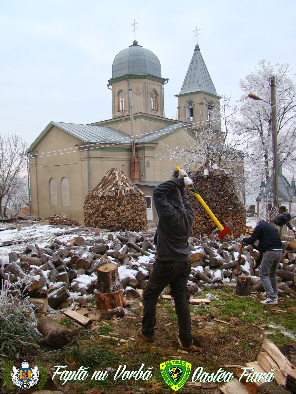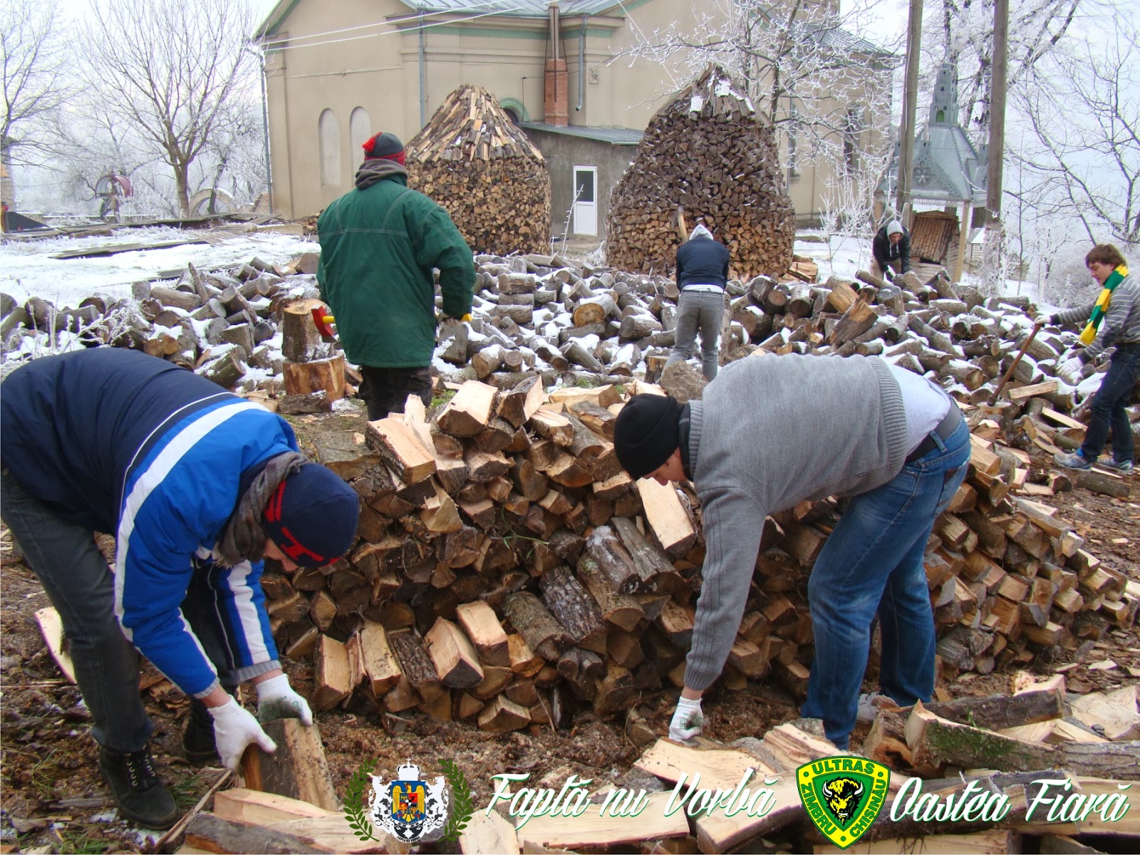 În ajun de Crăciun grupul organizat de suporteri OASTEA FIARĂ, împreaună cu grupul de acțiune FAPTĂ NU VORBĂ, au organizat câteva acțiuni sociale în orașul Nisporeni. (21.12.2013)Grupul nr. I, ce a întrunit în sine 7 persoane a avut ca misiune despicarea lemnelor pentru iarnă la Mănăstirea de măicuțe din Vărzărești (Nisporeni). Am considerat că ţine de responsabilitatea noastră ca creștini, și ca bărbați, în ajun de Crăciun să dăm o mână de ajutor la cea mai veche mănăstire din Basarabia prin munca fizică. În decurs de 4 ore tinerii au despicat buturugi de lemn, au fost invitați să facă o pauză și să ia masa împreună cu măicuțele și preotul bisericii. Pe final, tinerii au avut parte de o conversație cu preotul bisericii Siluan, în care s-au arătat bucuroși și entuziasmați la o ulterioară colaborare.
