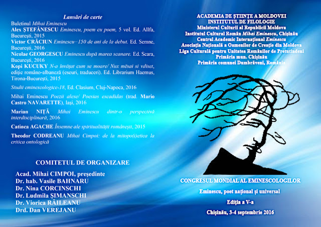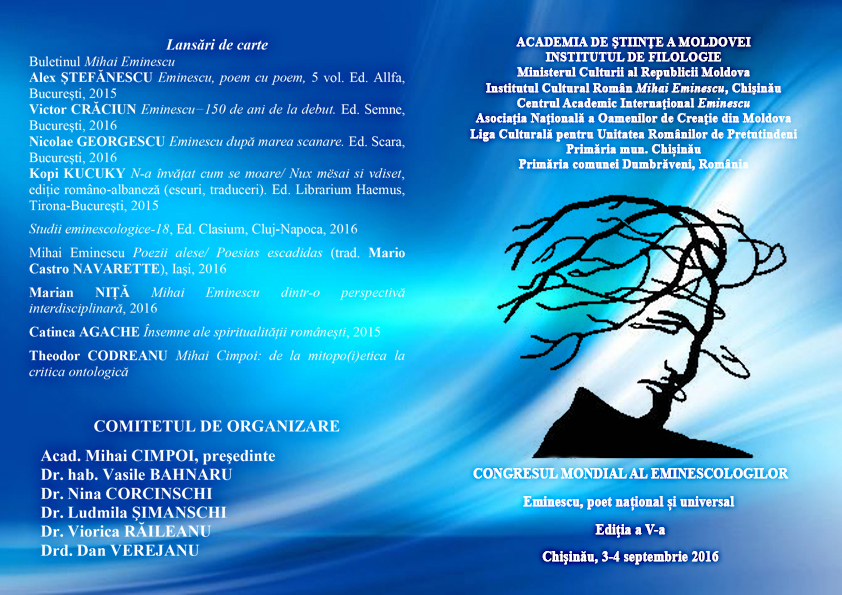 CONGRESUL MONDIAL AL EMINESCOLOGILOR: Eminescu, poet național și universal. Ediţia a V-a Chişinău, 3-4 septembrie 2016